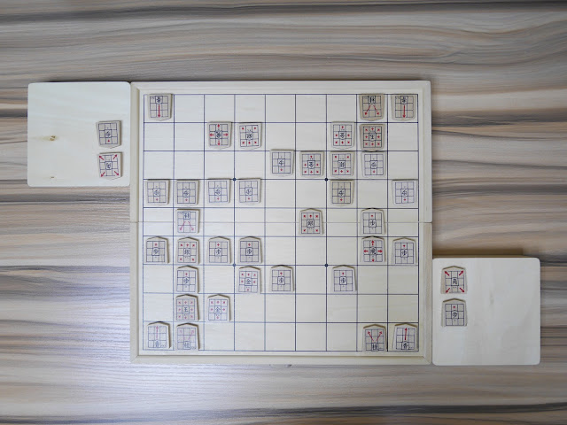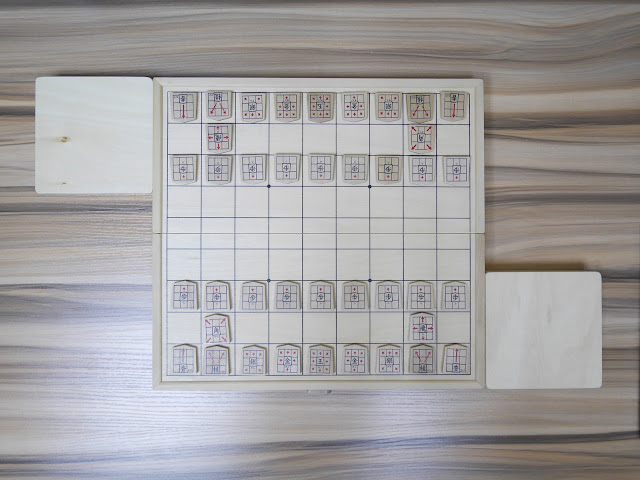 | 40枚棋子,正面(升變前)黑字表示;反面(升變後)紅字表示。 |