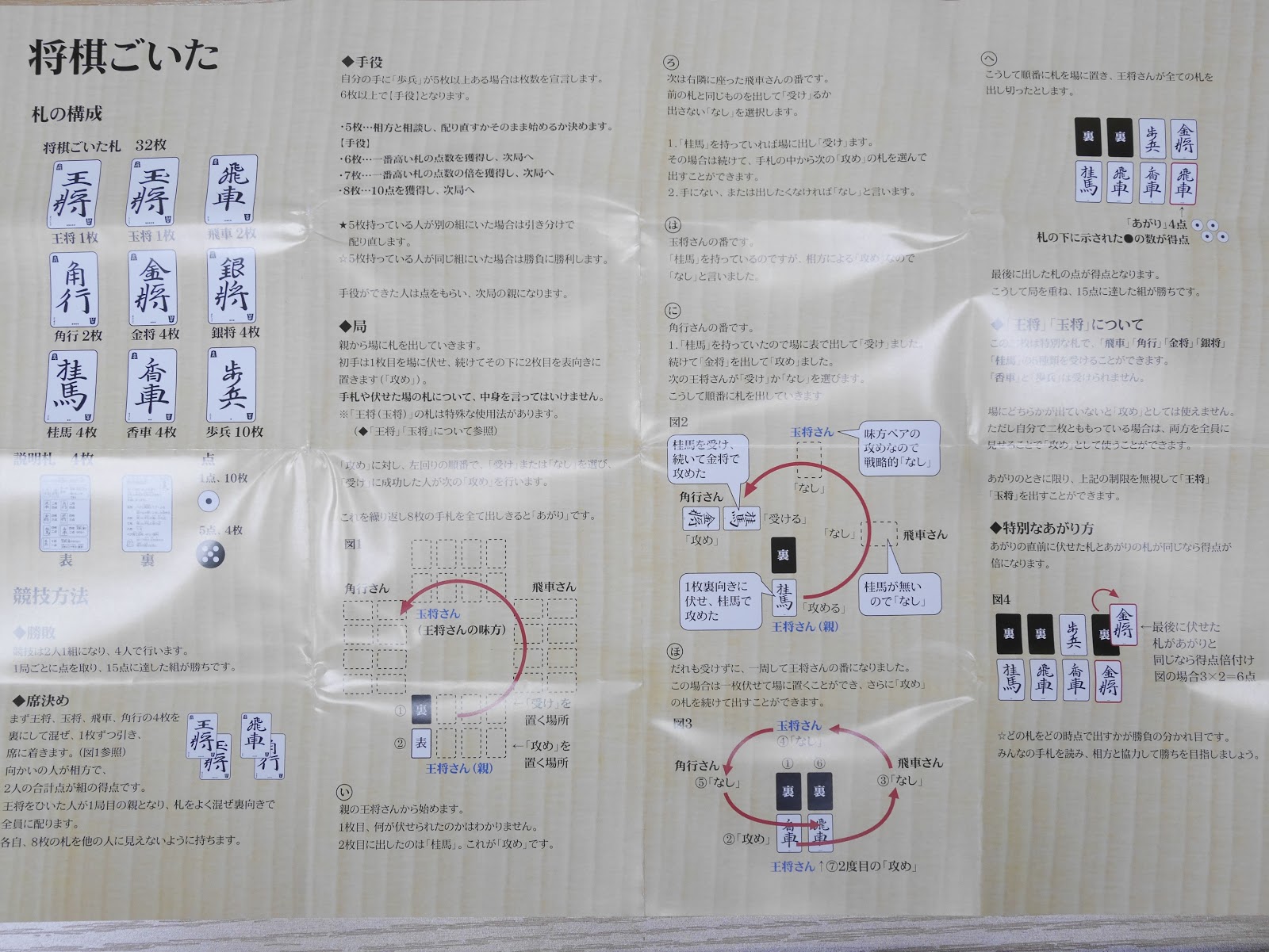 由推廣將棋的貓窗公司和能登 ごいた 保存會、Pigphone聯合製作的紙牌化版本,黑白風格十分簡約,小小的牌盒十分便於攜帶。規則簡單好記,玩起來不少團隊攻防有趣的元素,是一款適合所有人的小品遊戲。