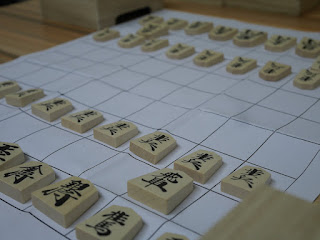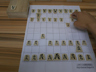 | 依序將棋駒擺上棋盤上,並將駒盒分別擺上,做成簡易駒台,如上圖 |