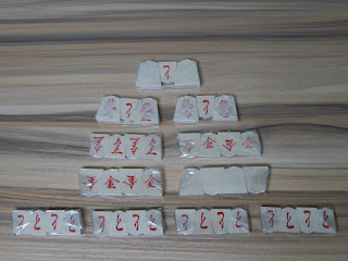 | 正面,王、飛角、金銀桂香各2枚;步兵19枚(18實戰+1枚備用) |
