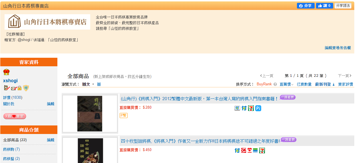 這個我是沒買過,但我有聽過朋友說過可以買到,這邊主要是有賣將棋書(而且蠻多的),所以可以推薦給大家去找找,我想可以買到的機會應該蠻大的!!
