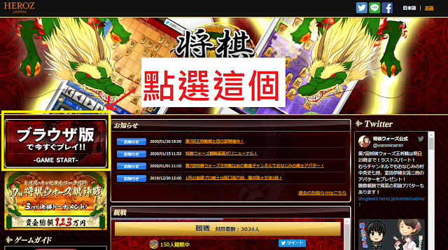 首先,先到GOOGLE搜尋「shogiwars」,或直接進入官網(連結),進到網頁版視窗。