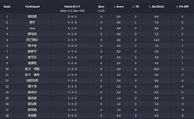 本次參賽者有30位,其中7位為初學組、18位級位組及5位段位組。戰績圖如下: